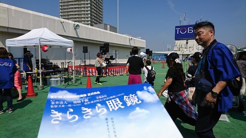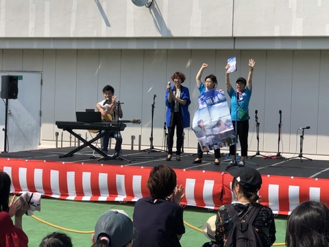 今回の船橋東武DE夏祭りの中心であり、ふなばしミュージックストリートの実行委員でもある小松優一さんからステージに呼ばれて急遽PRすることになったチームきらきら。