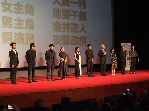 「日本映画週間」というイベントは、上海国際映画祭に合わせて日本の映画を上映する特別なイベントで、普段日本の映画を見る機会の少ない中国の人がとても楽しみにしているイベントでもあるそうです。映画「きらきら眼鏡」一行はオープニングセレモニーの特別ゲスト枠として登壇したとのこと。