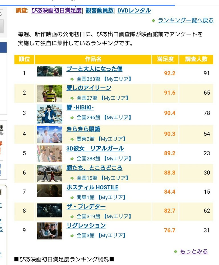 yahoo映画1位/ぴあ映画初日満足度ランキング4位!