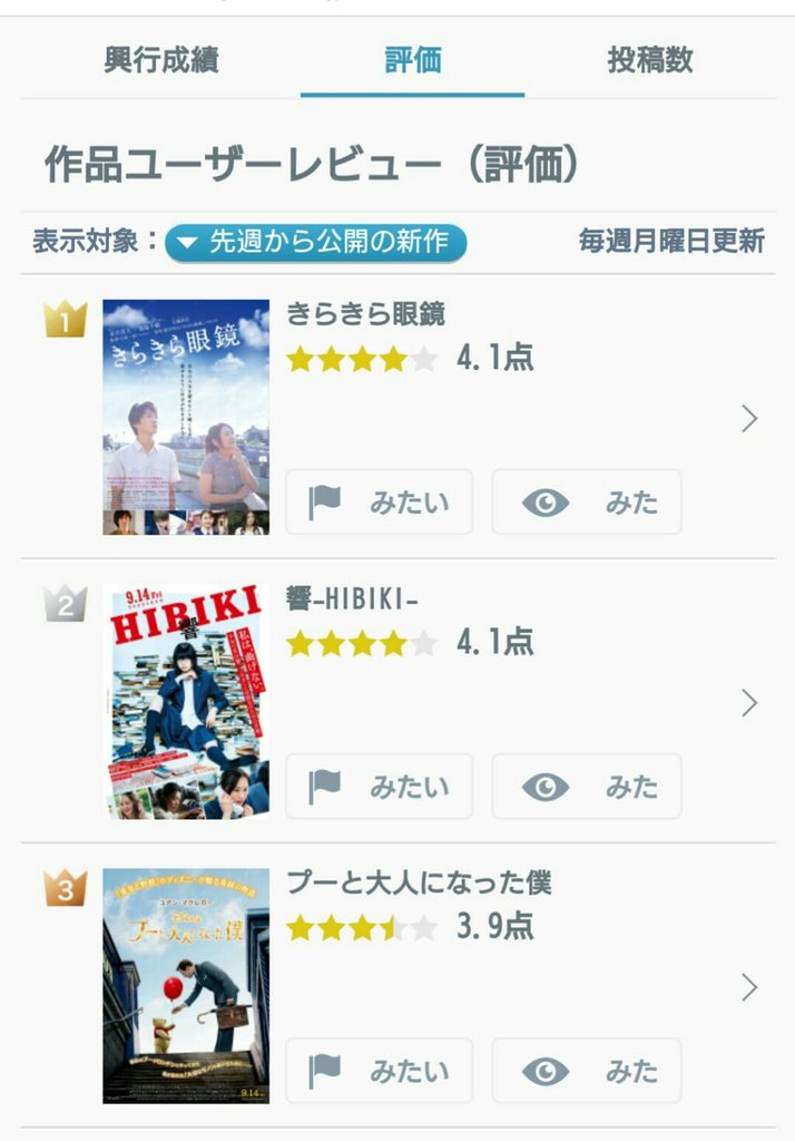 現在、tohoシネマズ ららぽーと船橋とスバル座で上映されておりますが、Yahoo 映画でのユーザー評価ランキングで1位となっております!