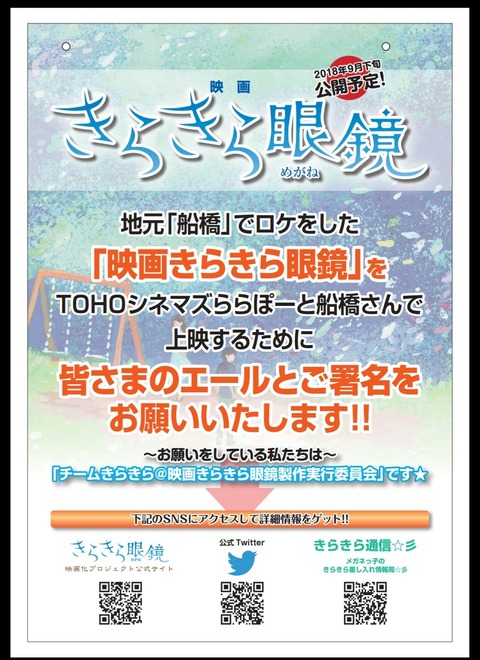 2017年9月23日にクランクインした船橋が舞台の映画「きらきら眼鏡」。 市民参加型の映画製作で、100年先にまで残る名作を。 ここは、その映画を支えた人たちの記録と記憶のページ。
