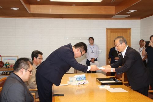 寄贈された本は、市内の図書館、中学校、公民館図書室などに配られるそうです。