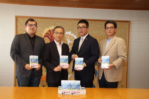 そしてそう、もうご存知の方もいらっしゃるとは思いますが、船橋宿場町再生協議会の理事長大木武士さん、監事蓮池政貴さん、高村清太郎さんが10月1日「眼鏡の日」に合わせて、船橋市役所に行って小説「きらきら眼鏡」を150冊寄贈されました。